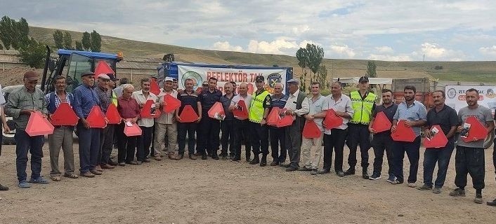 Toprak Mahsulleri Ofisi’ne hasat ettikleri ürünleri traktörleri ile teslim etmek amacıyla gelen çiftçilere, Jandarma Trafik Timleri tarafından, traktör kazalarını önlemeye yönelik alınacak tedbirler ile bu tedbirler çerçevesinde traktörlerin trafikte görünürlüğünü arttıran reflektör ve sürücülerin devrilen traktörün altında kalmasını engelleyen ROPS (Koruma Çerçevesi) demirinin önemi anlatıldı. Eğitimin ardından 100 traktör sürücüsüne reflektör ve broşürler dağıtıldı.