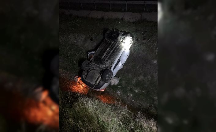 ÇORUM'UN KARGI İLÇESİNDE BİR OTOMOBİL SÜRÜCÜSÜ YOLUN KARŞI ŞERİDİNE GEÇEREK TAKLA ATTI. KAZADA 1 KİŞİ YARALANDI (TURAN OZAN ACAR/ÇORUM-İHA)