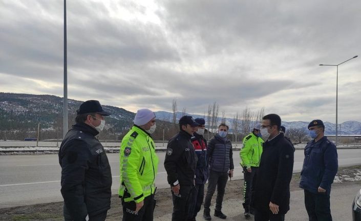 Osmancık Kaymakamı Ayhan Akpay, polis ve jandarma ekipleri tarafından oluşturulan ortak kontrol noktalarını ziyaret etti.
