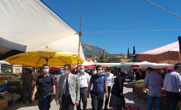 Kaymakam pazarda korona virüs tedbirlerini denetledi