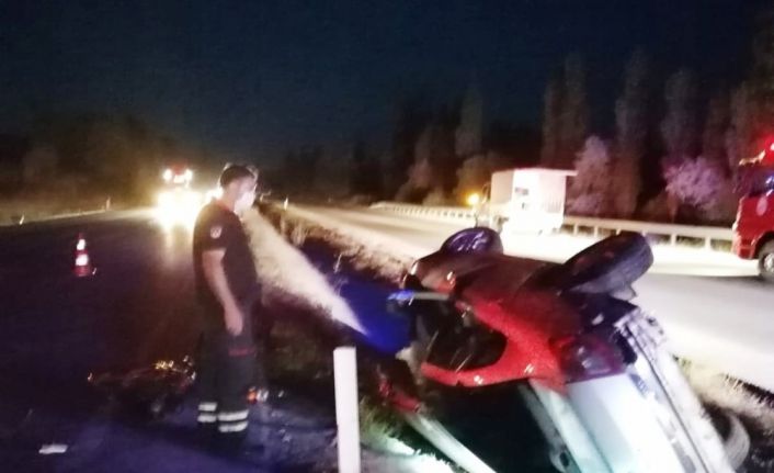 Çorum’un Sungurlu ilçesinde kontrolden çıkan otomobilin orta refüje devrilmesi sonucu meydana gelen trafik kazasında 3 kişi yaralandı.