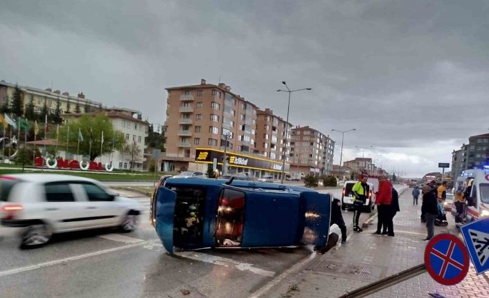 Çorum’un Sungurlu ilçesinde meydana gelen trafik kazasında, bilgilendirme levhasına çarpan otomobil yan yattı. Kazada araç sürücüsü hafif şekilde yaralandı.