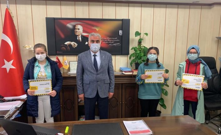 İlçe Milli Eğitim Müdürü İdris Makineci, yapılan LGS deneme sınavında birinci olan Mehmet Akif Ersoy Ortaokulu’ndan Sündüs Sude Tak, ikinci olan Meliha Rıfat Göbel Ortaokulu’ndan Sıla Uzar ve üçüncü olan Atatürk Ortaokulu’ndan Zeynep Zülal Karakuş’u tebrik ederek başarı belgelerini ve hediye çeklerini taktim etti.