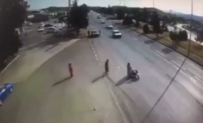 Kazanın güvenlik kameraları ortaya çıktı. Görüntülerde motosiklet ve otomobilin çarpışmasının ardından motosikletin metrelerce sürüklendiği anlar yer aldı.