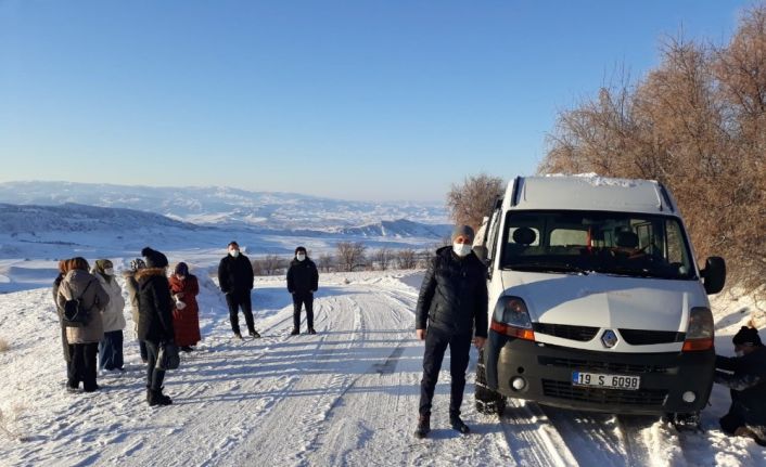 Çorum’un Sungurlu ilçesinde bir köyde görevli öğretmenler kar engeline takıldı. Servisleri yolda kalan öğretmenler kendi imkanlarıyla aracı kurtardı.