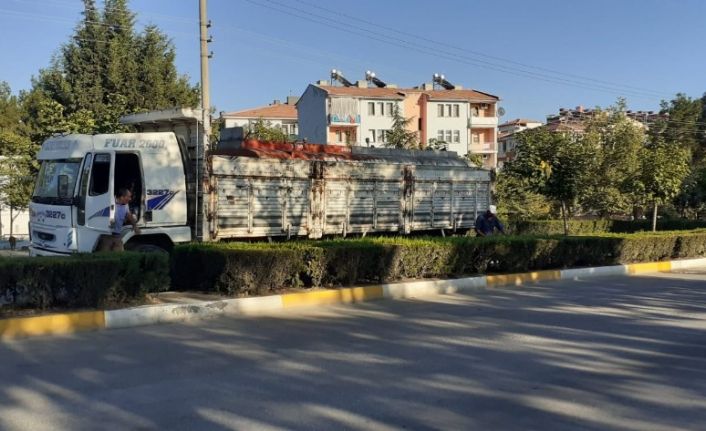 Çorum’un Osmancık ilçesinde belediye ekipleri tankerle yeşil alanları suluyor.
