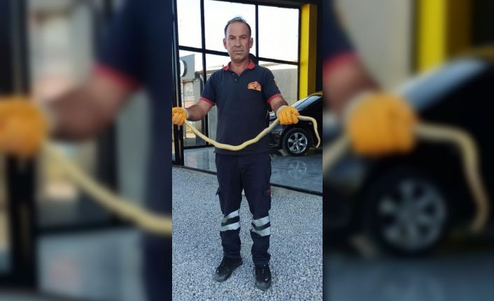 Çorum’un Alaca ilçesinde, bir otomobil galerisine giren yılan paniğe neden oldu.