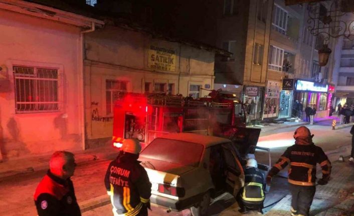 Çorum’da seyir halindeyken motor kısmı tutuşan otomobilde çıkan yangın itfaiye ekipleri tarafından söndürüldü.