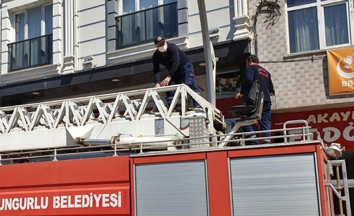 Sungurlu Belediyesi İtfaiye ekipleri, merdiven yardımıyla güvercini kurtardı, kuş daha sonra bırakıldı.