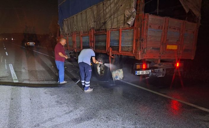 Edinilen bilgilere göre, Çorum’dan Kahramanmaraş’a giden Nurettin Akçadağ idaresindeki 46 AU 367 plakalı döküm malzemesi yüklü kamyonun Küre Köyü yakınlarında balatalarının ısınması sonucu arka lastiklerinden alevler yükselmeye başladı. Durumu fark eden sürücü itfaiyeyi arayarak yardım istedi.