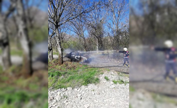 Çorum’un İskilip ilçesinde seyir halindeyken alev alan otomobil kullanılamaz hale geldi.
