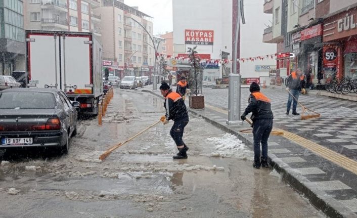 Sungurlu Belediyesi, sabah saatlerinde başlayan kar yağışından vatandaşların en az şekilde etkilenmesi için çalışmalar başlattı.