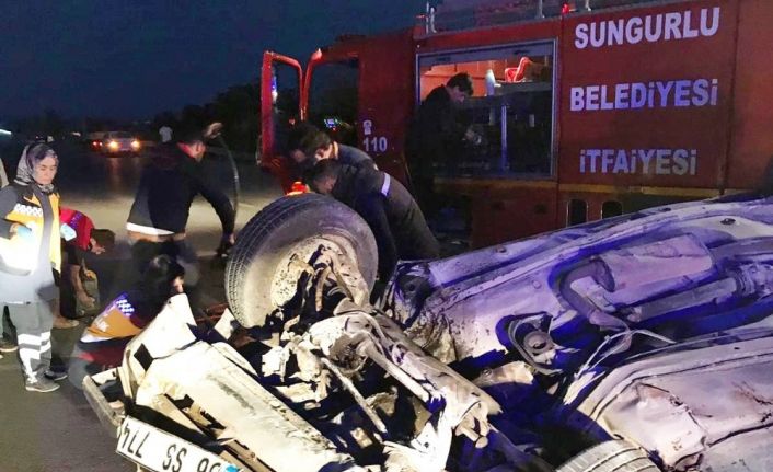 Edinilen bilgilere göre kaza sabah saatlerinde Sungurlu-Kırıkkale karayolu Çiftlik Kavşağı’nda meydana geldi. Sungurlu’dan Ankara istikametine seyir halinde olan Haydar Öztırak yönetimindeki 06 SS 774 plakalı otomobil, sürücüsünün direksiyon hakimiyetini kaybetmesi sonucu bariyerlere çarptı. Yol ortasına devrilen araçta sürücü araçta sıkıştı. Kazayı gören diğer sürücüler durumu itfaiye, emniyet ve sağlık ekiplerine bildirdi. Kısa sürede kaza yerine gelen Sungurlu Belediyesi İtfaiye ekipleri yaralı sürücüyü sıkıştığı yerden çıkardı. Kazada yaralanan sürücü ve araçta yolcu olarak bulunan Menduha Öztırak ambulansla Sungurlu Devlet Hastanesi’ne kaldırılarak tedavi altına alınırken, durumu ağır olan sürücü haydar Öztırak yapılan ilk müdahalenin ardından Hitit Üniversitesi Erol Olçok Eğitim ve Araştırma Hastanesi’ne sevk edildi.