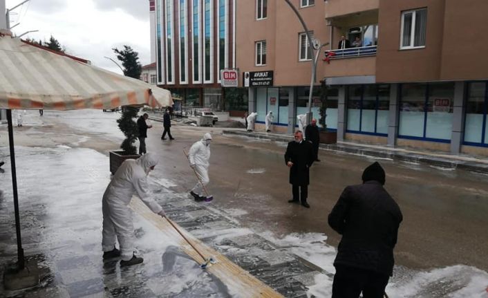 Sungurlu Belediyesi Corona virüsü tedbirleri kapsamında çarşı merkezini yıkıyor.