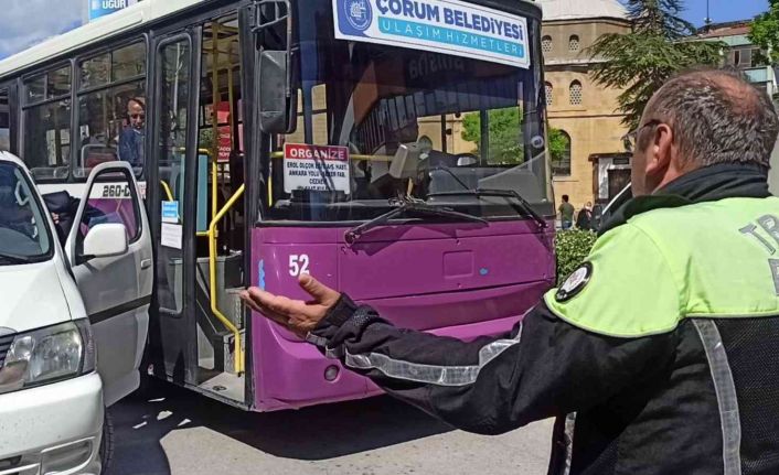 Çorum’da aracını hatalı park eden bir sürücü trafiğin kilitlenmesine neden oldu.