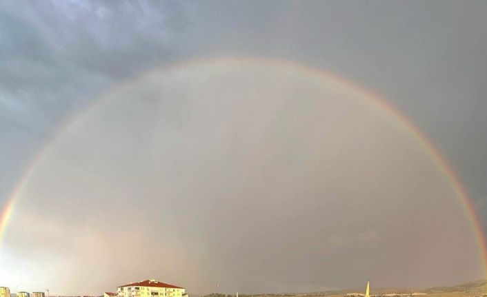 Çorum’un Sungurlu ilçesinde yağmur sonrası ortaya çıkan gökkuşağı görsel şölen sundu.