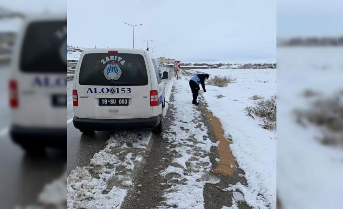 Çorum’un Sungurlu ilçesi’nde zabıta müdürlüğü ekipleri, kar yağışının başlamasıyla birlikte muhtelif yerlere yem bıraktı.