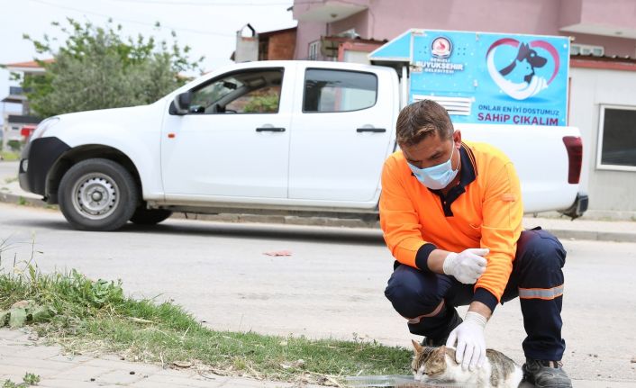Korona virüs tedbirleri kapsamında uygulanan sokağa çıkma kısıtlamasında tüm hizmetlerini eksiksiz sürdüren Denizli Büyükşehir Belediyesi sokak hayvanlarını da unutmadı.