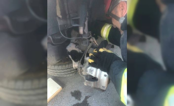 Denizli’de aracın tekerlek bölümünde sıkışarak mahsur kalan köpek, itfaiye ekiplerinin yardımıyla sıkıştığı yerden çıkartıldı. Köpek olaydan yara almadan kurtuldu.
