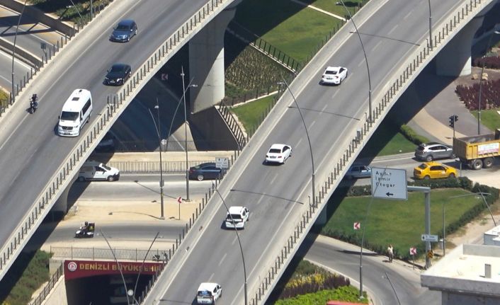 Önemli tatil beldelerine gidiş noktası olan Denizli-Antalya, Denizli-Muğla karayolların Arefe günü oluşan trafik yoğunluğu havadan denetlendi.