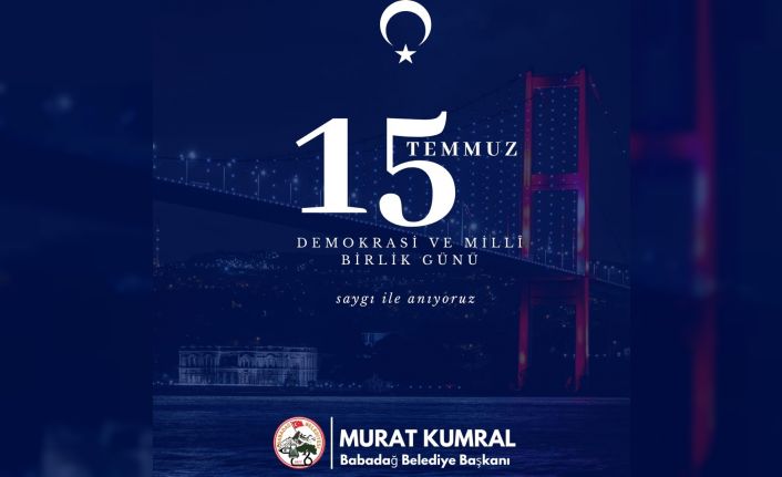 Babadağ Belediye Başkanı Murat Kumral, 15 Temmuz Demokrasi ve Milli Birlik Günü dolayısıyla bir mesaj yayımladı. Başkan Kumral, mesajında; “15 Temmuz 2016 gecesi, milletimizin demokrasiye olan inancını, vatan sevgisini ve özgürlüğüne olan bağlılığını tüm dünyaya gösterdiği bir gecedir. 15 Temmuz hain darbe girişiminde canlarını feda eden şehitlerimize Allah’tan rahmet, gazilerimize şükranlarımızı sunuyoruz” ifadelerini kullandı.
