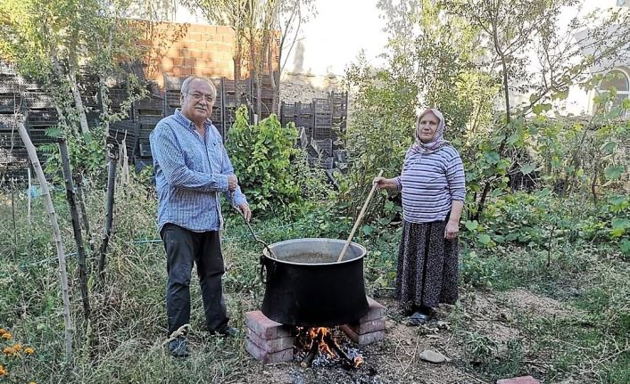 Eşi Ayşe Gülsever ise, her yıl Eylül ayında pekmez yaptıklarını belirterek, “Meşakkatli bir iş ama keyifli” diye konuştu.
