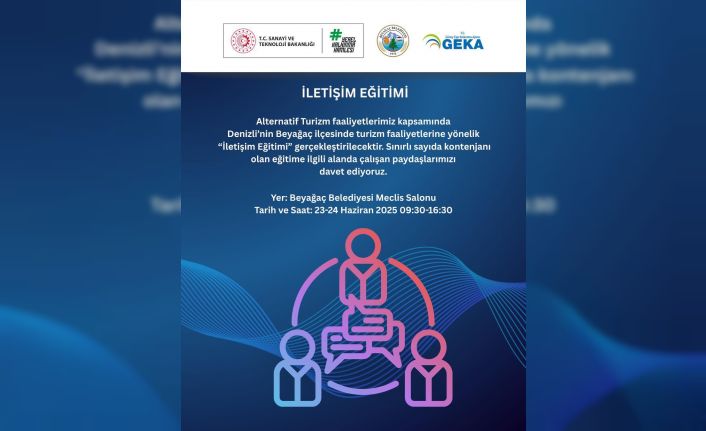 DENİZLİ (İHA) – Denizli’nin Beyğaç Belediyesi ve GEKA işbirliğinde, turizm sektörü çalışanlarına yönelik olarak "İletişim" eğitimi düzenlenecek.