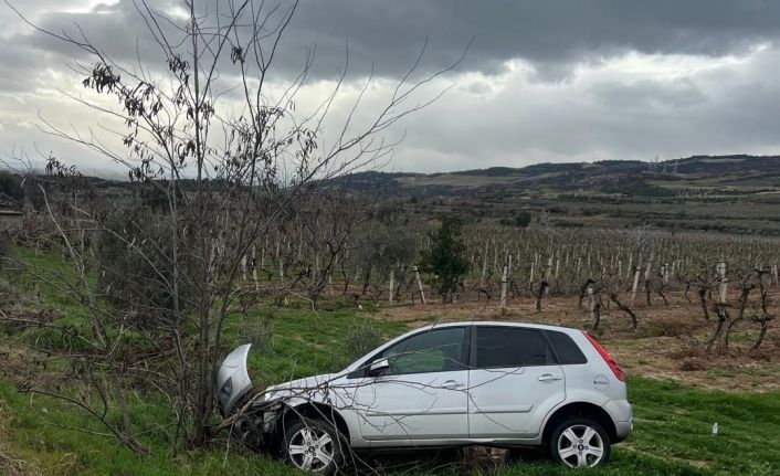 Denizli’nin Buldan ilçesinde 20 ADR 254 plakalı otomobil, yağmur yağışıyla kayganlaşan yolda sürücüsü M. S.’nin direksiyon hâkimiyetini kaybetmesi sonucu kontrolden çıkarak üzüm bağına uçtu. Kazada can kaybı ve yaralanma yaşanmazken, otomobilde ağır maddi hasar meydana geldi.