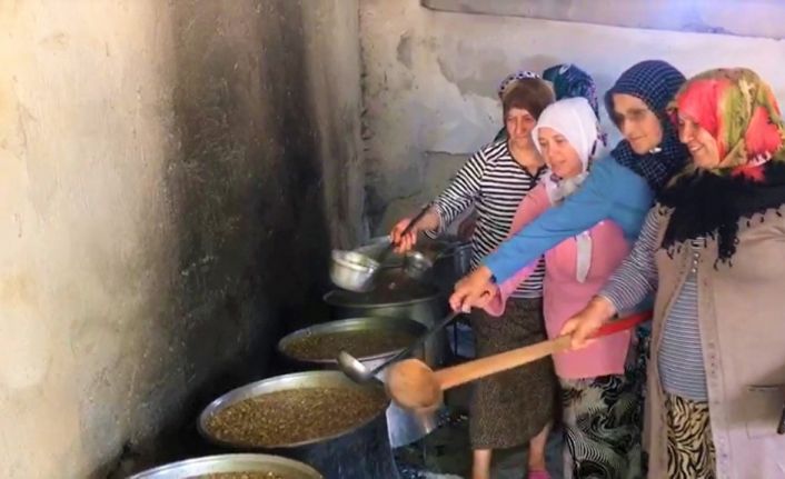 Etkinliğe katkı sağlayan aşure ustalarından Zühra Saltıker ise “Aşure yapımı için badem, fındık, ceviz, fasulye, buğday, nohut, mısır, börülce, çitlembik, elma, portakal, kayısı, pekmez, bal ve kırk çeşit baharat koyarak kaynatıp karıştırıyoruz. Bu yıl altı kazan aşure yaptık. Allah kabul etsin” ifadelerini kullandı.