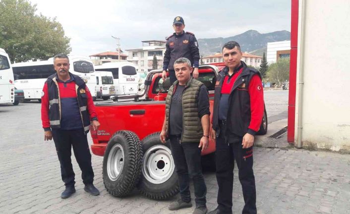 Denizli’de yangında kullanılması için hazır bekletilen su dolu tankerin lastiklerinin çalınmasının ardından Denizli Büyükşehir Belediyesi İtfaiye Daire Başkanlığı duruma el atarak yeni lastik ve jantlar aldı.