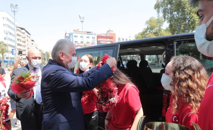 Finlandiya’nın Tempere kentinde düzenlenen Avrupa Ümit, Genç ve 21 Yaş Altı Avrupa Karate Şampiyonası’nda altın madalya kazanarak Avrupa Şampiyonu olan Denizli Büyükşehir Belediyespor Karate Takımı sporcusu Damla Su Türemen ile takım halinde Avrupa ikincisi olan Denizli Büyükşehir Belediyespor Karate Takımı sporcuları Peri Koyuncu, Aslı Başak Pehlivan ve antrenör Muhammet Kaya memleketlerinde çiçeklerle karşılandı. 15 Temmuz Delikliçınar Şehitler Meydanı’nda yapılan karşılama törenine Denizli Büyükşehir Belediye Başkanı Osman Zolan, Büyükşehir Belediyesi Genel Sekreter Yardımcısı Ömer Faruk Özer, Gençlik ve Spor İl Müdürü Ahmet İbanoğlu, sporcu aileleri ile Denizli Büyükşehir Belediyespor sporcuları katıldı. Alkış ve konfetiler eşliğinde gerçekleştirilen karşılama töreninde Başkan Osman Zolan, genç sporculara çiçek takdim ederek tebrik etti. Büyükşehir’in Avrupa fatihi altın kızları hedeflerinin olimpiyat ve dünya şampiyonluğu olduğunu belirtti.