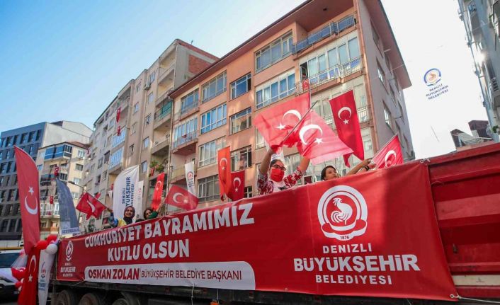 Denizli Büyükşehir Belediyesi, Cumhuriyetin ilanının 98. yıldönümü için düzenlediği birçok programın yanı sıra bayram coşkusu ve sevincini hazırlanan Cumhuriyet Bayramı Tırı ve mobil araçlarıyla kentin dört bir yanına taşıdı.