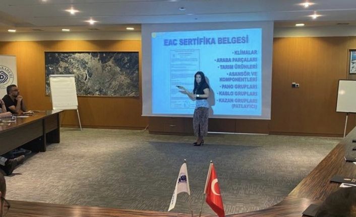 Eğitim programında; EAC Gümrük Birliği Sertifikası, EAC Gümrük Birliği Deklarasyon, Sertifika içeriği olan Alıcı (zayavitel) firmanın önemi, CE standardı taşıyan EAC belgesinin dolaşım hakları, EAC belgesinin inspeksiyon kontrolleri, Avrasya Toprakları: Rusya, Beyaz Rusya, Kazakistan, Kırgızistan, Ermenistan, Avrasya Gümrüklerinde Yaşanan Sıkıntılar, Ukrayna UKR-Sepro Deklarasyon, UKR-SEPRO belgesinin yeni yapılandırılması gibi konu başlıkları üzerinde duruldu. Bilgilendirme toplantısı, yapılan bilgilendirmelerin ve paylaşımların ardından soru-cevap bölümüyle devam etti.