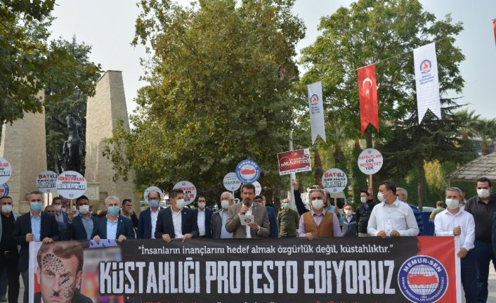 Memur-Sen 81 ilde Hz. Muhammed’e hakaret eden karikatürleri kamu binalarına yansıtan Fransa Cumhurbaşkanı Macron’u protesto etti. Konuyla ilgili açıklama yapan Memur Sen Denizli İl Temsilcisi Feyzullah Öselmiş, “İnsanlığın inançlarını hedef almak özgürlük değil, küstahlıktır. Avrupa’daki kimi siyasetçilerde olduğu gibi Macron da kirli siyasetine malzeme aramaktadır” dedi.