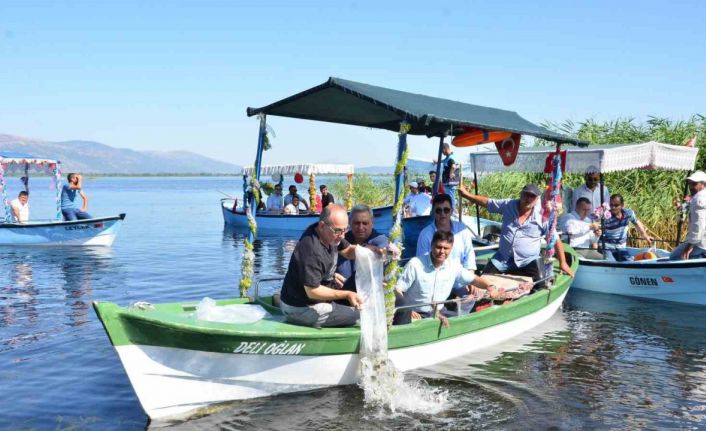 Konuşmaların ardından teknelerle Işıklı Gölüne açılan protokol üyeleri, 300 bin yavru sazan balığını göle bıraktı. Balıklandırma programı çerçevesinde 13 ilçedeki 24 su kaynağında daha 465 bin adet sazan yavrusu suyla buluşturuldu.