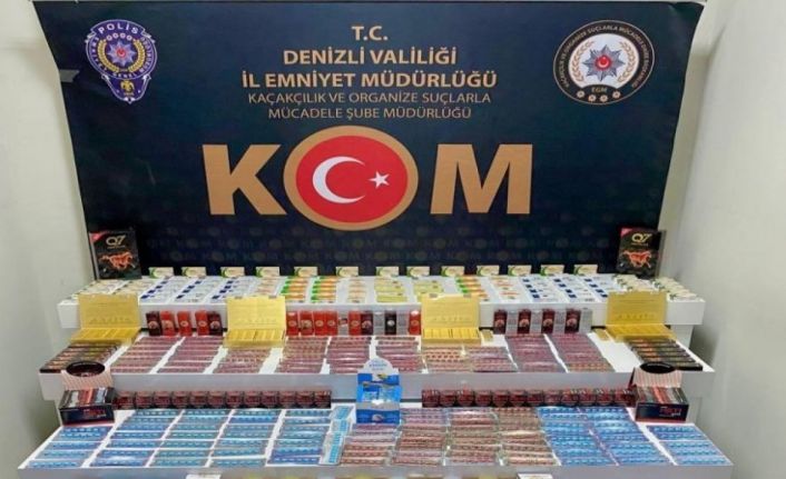 DENİZLİ(İHA) – Denizli’de kaçakçılık suçunun önlenmesine yönelik yapılan operasyon ve takibinde 400 bin adet kaçak makaron ve 3 bin 842 adet cinsel içerikli ürün ile ilaç ele geçirildi. Operasyon sonucunda 2 kişi adli makamlara sevk edildi.