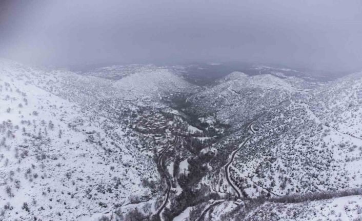 Denizli’de hava sıcaklığının mevsim normallerine dönmesiyle birlikte yüksek kesimlere yağan kar, kartpostallık görüntü oluşturdu.