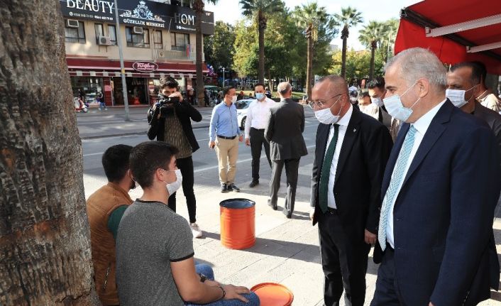 Denizli Valisi Ali Fuat Atik ve Denizli Büyükşehir Belediye Başkanı Osman Zolan, Gazi Mustafa Kemal Bulvarı’nda korona virüs denetiminde bulundu.