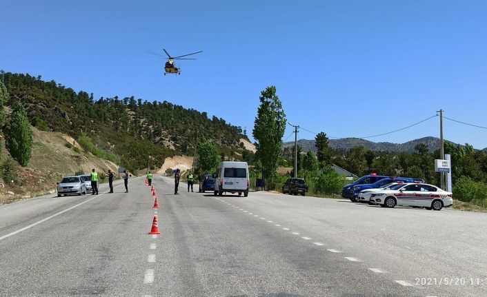 Denizli İl Jandarma Komutanlığı helikopter destekli trafik denetimlerinde 120 aracı kontrol etti.
