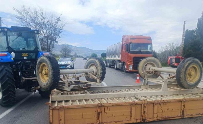 Denizli’nin Buldan ilçesinde traktör ile hafif ticari aracın çarpışması sonucu meydana gelen trafik kazasında yol bir süreliğine trafiğe kapandı. Şans eseri can kaybı veya yaralanmanın yaşanmadığı kazada araçlarda maddi hasar oluştu.