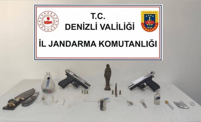 İl Jandarma Komutanlığı, uyuşturucu ile mücadele çalışmalarını sürdürülüyor. Buldan Cumhuriyet Başsavcılığı koordinesinde Denizli İl Jandarma ekiplerince uyuşturucu ile mücadele kapsamında farklı adreslerde eş zamanlı operasyon düzenlendi. Yapılan operasyonlar neticesinde 11 şüpheli gözaltına alınırken adreslerde yapılan incelemelerde 12 gram metanfetamin, 2 adet uyuşturucu hap, 12 kullanımlık kannobinoid maddesi,12 adet uyuşturucu kullanma aparatının yanı sıra 1 adete Meryem Ana heykeli, 1 adete ruhsatsız tabanca, 1 adet kurusıkı tabanca, 12 adet tabanca fişeği 10 adet kurusıkı tabanca fişeği ele geçirildi.