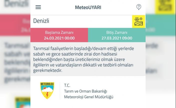 Meteoroloji Genel Müdürlüğü Denizli için zirai don uyarısında bulundu.
