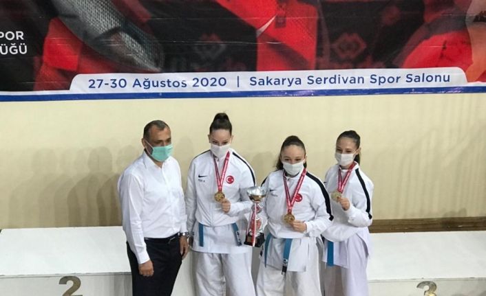 Sakarya’nın ev sahipliğini yaptığı Kulüpler Karate Şampiyonası, korona virüs salgını sebebiyle temas gerektirmeyen Kata dalında gerçekleşti. Şampiyonaya 50 ilden 711 kadın, 1033 erkek sporcu ter döktü. Pandemi sebebiyle müsabakalara seyirci alımı olmadı. Ümit-genç Bayanlar Takımı Kata’da Denizlili kızlar altın madalyanın sahibi oldu. Dört gün süren şampiyonada Denizli’yi temsil eden Damla su Türemen, Peri Koyuncu ve Aslı Başak Pehlivan takımı grup, yarı final ve finalde üst üste karşılaştığı maçlarda rakiplerine üstünlük sağlayarak Ümit-Genç Bayanlar Takım Kata kategorisinde Türkiye Şampiyonu oldu.