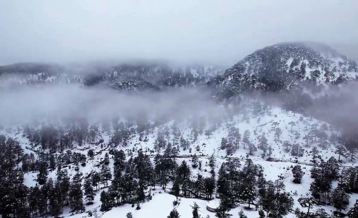 Denizli’nin rakım olarak en yüksek ilçelerinden biri olan Çameli ilçesinde yüksek kesimlerde kar yağışı, buzlanma ve aşırı soğuk kendisini hissettirmeye devam ediyor. Sibirya soğununun yaşandığı ilçede kar kalınlığının 30 santimetreye ulaştığı Karabayır Mahallesi’nde oluşan kartpostallık manzara, drone uçuran doğa tutkunları tarafından kayıt altına alındı.