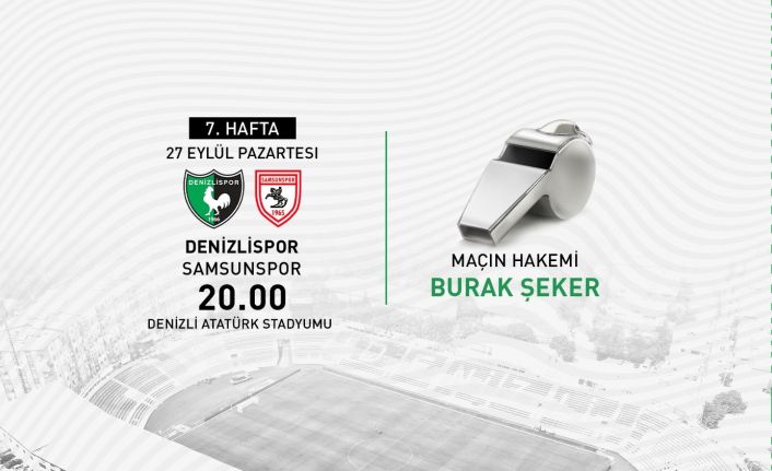 TFF 1. Lig’in 7. haftasında Denizlispor ile Samsunspor arasında 27 Eylül Pazartesi günü oynanacak karşılaşmayı hakem Burak Şeker’in yöneteceği açıklandı.