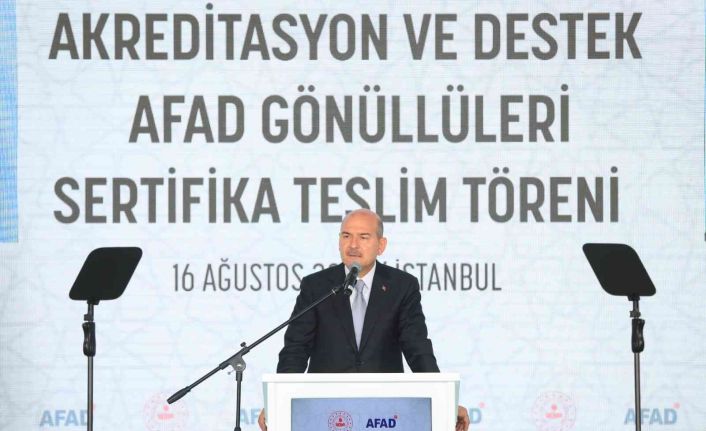 İçişleri Bakanı Soylu, konuşmasının ardından arama kurtarma ekiplerine akreditasyon sertifikalarını verdi.