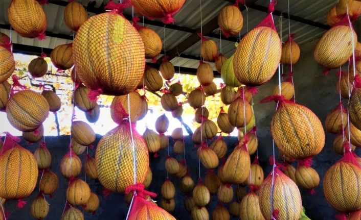Denizli’nin Buldan ilçesinde yaz aylarında toplanarak filelere koyulan kavun, bahar aylarına kadar çürümeden muhafaza altına alınıyor.