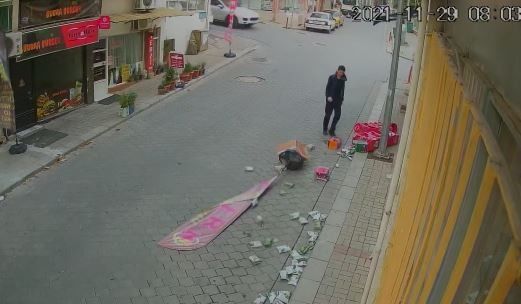 Denizli’de dün geceden beri etkili olan rüzgar çatıların uçmasına reklam tabelalarının düşmesine neden oldu. Saatteki hızı 60 kilometreyi bulan rüzgâr nedeniyle Sırakapılar Mahallesi’nde bir marketin önünde bulunan cipsler uçtu. Yola savrulan cips paketleri güvenlik kamerasına yakalandı. Market sahibi Mahmut Kızılhan, “Denizli’de rüzgâr iki gündür çok sert esiyor. Benim ürünleri de dağıttı. Tek tek topladık. Allah afetinden korusun” dedi.