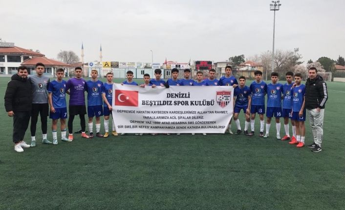 Denizli U16 Ligi’nde oynanan Akkonakspor-Beşyıldızspor maçında futbolcular, karşılaşmaya Kahramanmaraş merkezli meydana gelen deprem nedeniyle duydukları üzüntüyü ifade eden ve depremzedelere destek içeren afiş ile çıktılar.