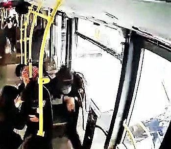 Halk otobüsüyle yolculuk ederken, oturduğu cama yük asansörünün çarpması sonucu yaralanan kişi ve diğer yolcuların yaşadığı panik anları, araç içi kameralarına saniye saniye yansıdı. Görüntülerde ana caddede seyir halinde olan halk otobüsünün arka camlarına hızla inen yük asansörünün çarptığı, kırılan camların yanında oturan yolcuların başlarını eğerek kendilerini korumaya çalıştığı, yaşanan panik ortamı ve sonrasında yolcuların çıkış kapılarına doğru hareket ettiği anlar yer aldı.
